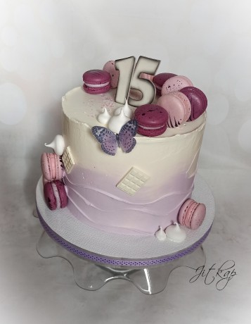 Red velvet, mascarpone krém a maliny, povrch bílkový krém.